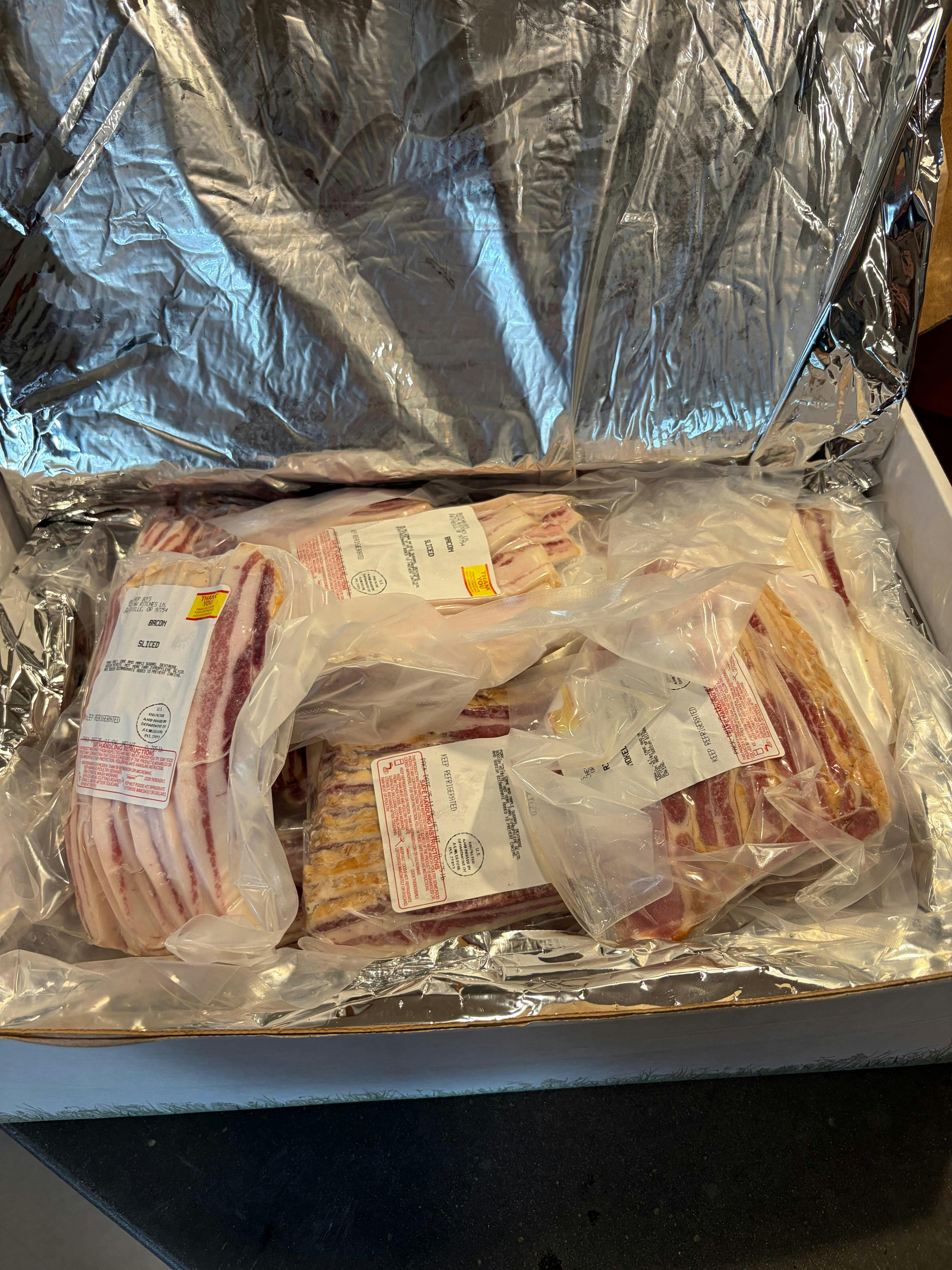 I've been buying Casad's meat and produce for years at the local farmer's markets and from Locavore. This was my 1st time ordering for delivery and I'd happily to it again! First off, there's something magical about Casad's bacon! It might be more expensive than other options but the flavor is unmatched. You can just taste the quality and care than went into these animal's lives. The delivery process was smooth. Chris called me to update me on the order delivery time. The meat is packaged great in a sturdy cardboard and insulated box. The only minor issue was I didn't get a lot of variety...only 2 different kinds in this box. It was clear on the ordering that they could substitute for what was really in stock, and I got mostly belly bacon which is what I really wanted anyways.